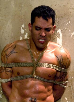 Marcus continued up Jake's arms, wrapping rope around his elbows and pulling them closer together until the shoulder blades nearly touched. The skin around the bindings blanched white, then reddened.